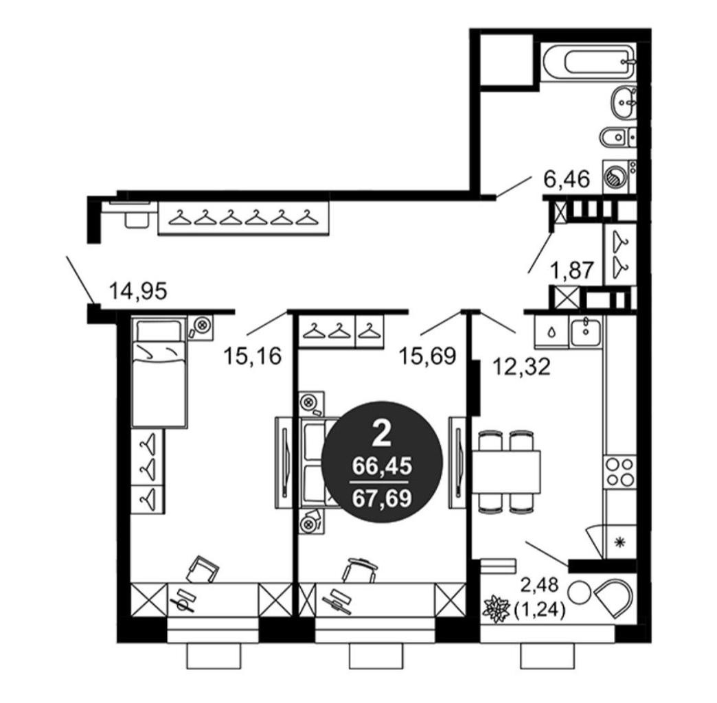 - В проекте представлено большое количество планировочных решений - от студий до просторных 3х-комнатных квартир.